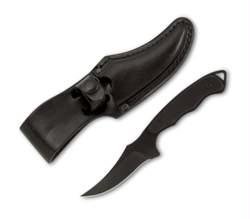 Traditional fixed blade skinner with leather sheath. Knife features surgical stainless steel blade with black non glare finish and G-10 Handles. Blade Material: 440 stainless steel. Handle Material: G-10. Blade Detail: Plain.